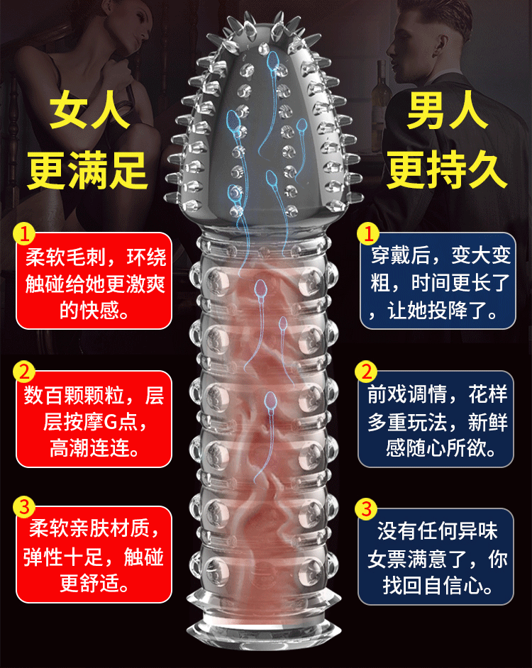 - Đặc điểm: Bề mặt gân bi nổi cộm và có nhiều gai mịn trên đầu bao tăng khoái cảm cực mạnh cho nàng