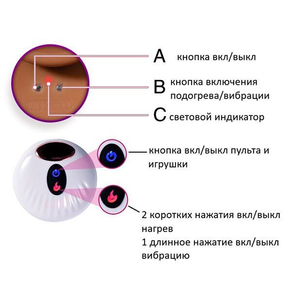 – Giữ chặt nút trên dương vật để bật/tắt. Sau đó dùng điều khiển từ xa điều chỉnh các chế độ rung xoay và sưởi ấm theo ý muốn.
