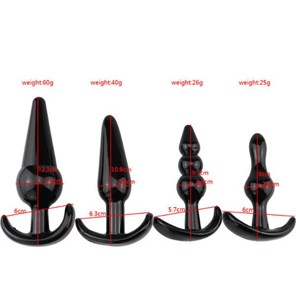 • Bộ dụng cụ gồm 4 phích cắm hậu môn có thiết kế và size khác nhau để bạn chọn lựa.