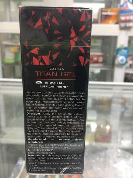 Titan gel là dòng sản phẩm cao cấp của Nga, giúp tăng kích thước dương vật, tăng cường khả năng sinh lý giúp kéo dài thời gian quan hệ. Đây chính là dòng sản phẩm sinh lý hàng đầu hiện nay được đánh giá cao bởi những bác sĩ trị liệu hàng đầu trên thế giới và được cánh mày râu tin dùng.